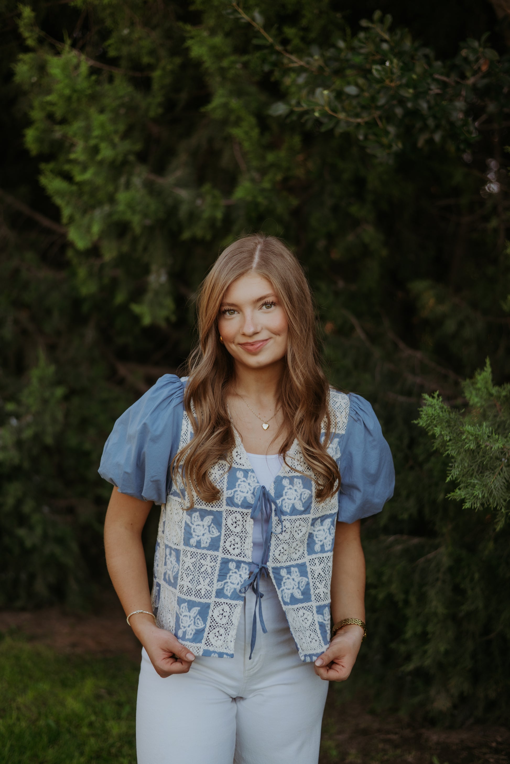 The Crochet Lace Tie Front V-Neck Blouse Top is a delicate and feminine piece that combines elegance with a bohemian charm. Crafted from lightweight, breathable fabric, this top features intricate crochet lace detailing that adds texture and a romantic touch. The V-neckline with a tie-front closure enhances the silhouette, offering a flattering and adjustable fit. The relaxed, flowy design makes it comfortable for all-day wear, while the lace accents create a soft, vintage-inspired aesthetic.